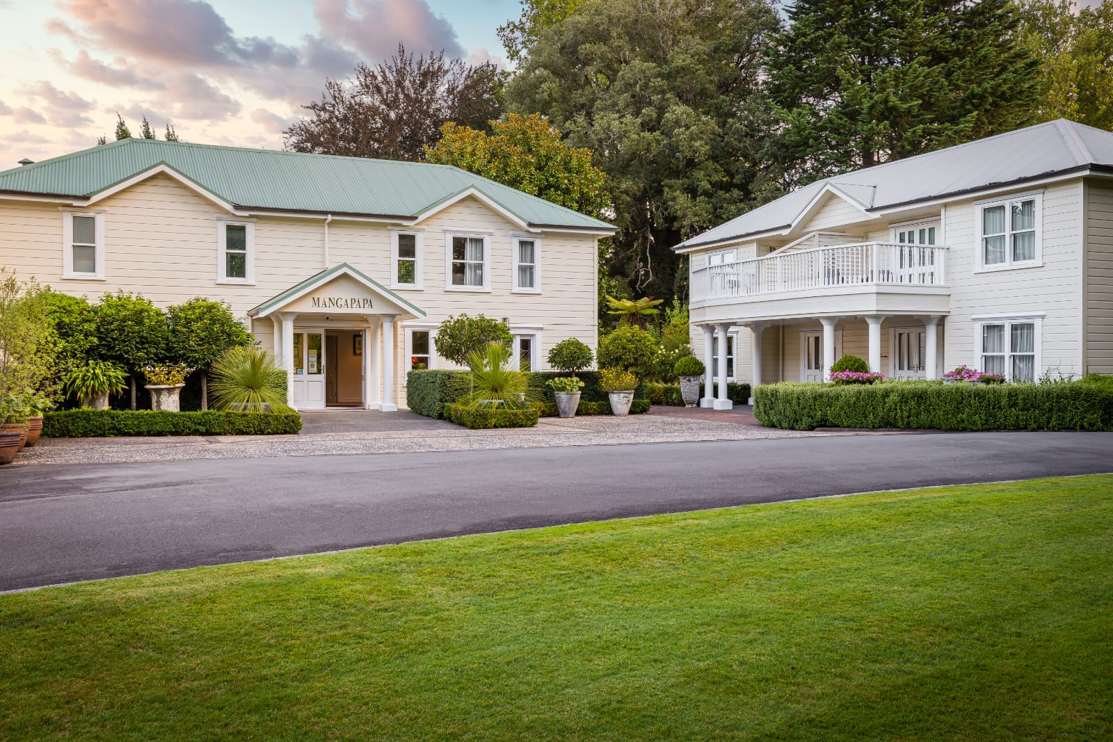 Mangapapa Hotel was a traditional Hawkes Bay homestead hotel sitting in fully developed gardens. It was already very special and destined to become even more so. The opportunity arose, through re-development of the homestead and three existing buildings to form an award winning boutique hotel complex.