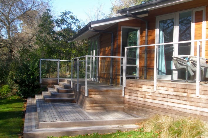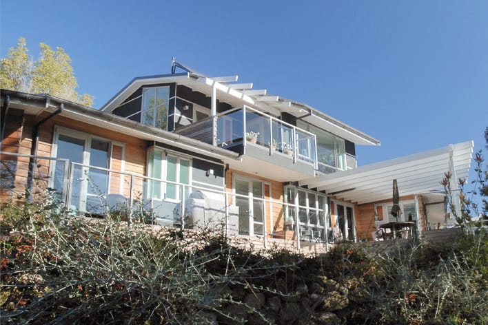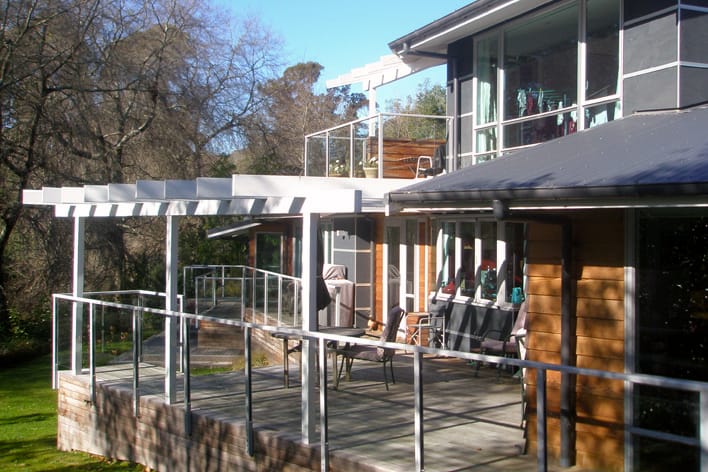JDTA were asked to design this new residence on a challenging steeply sloping site in Havelock North.  It is generally single storey but does have a first floor retreat that separates the master bedroom, en-suite, study and storage from the remainder of the building.  It is clad in cedar weatherboards complemented by dark coloured Shadowclad.  The building sits comfortably in its woodland setting, partly through use of suitable materials and colours, and partly through cutting the building into the existing hillside.